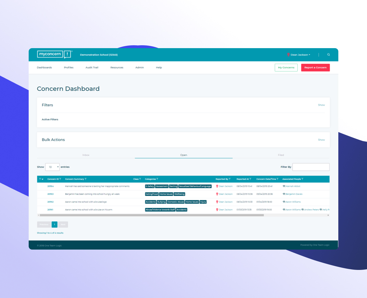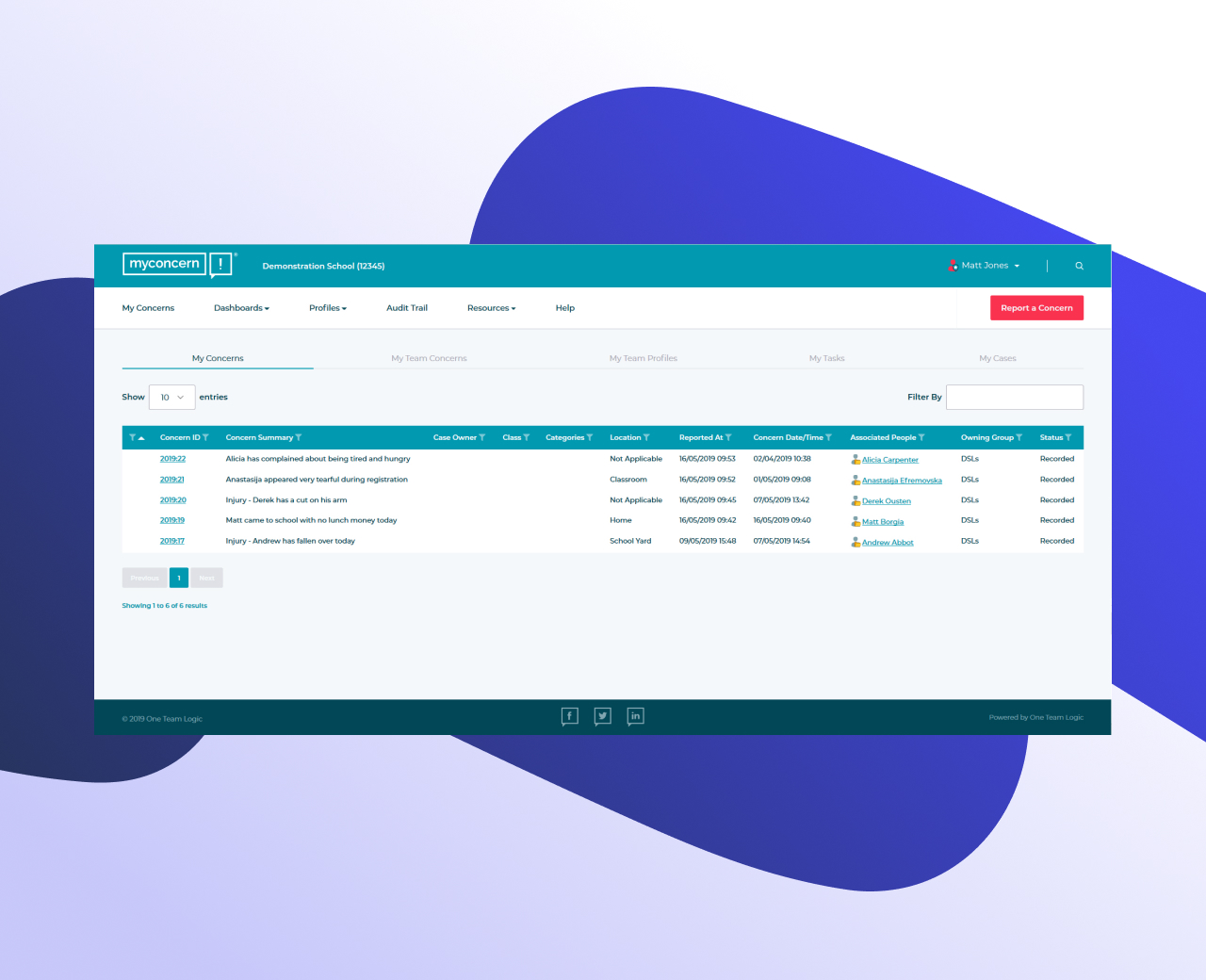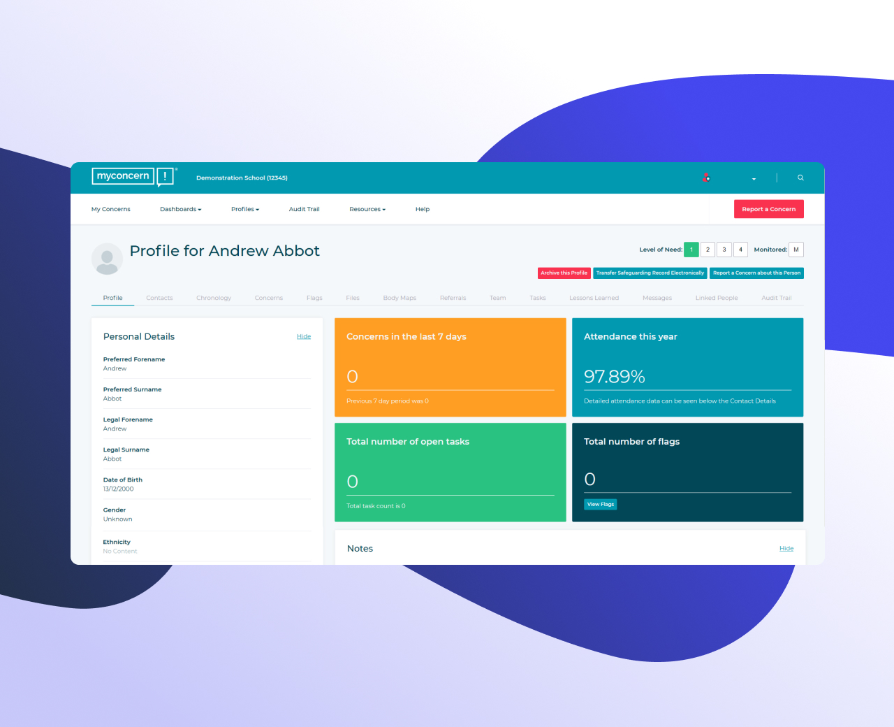 MyConcern gives schools a trusted way to record, manage, and track safeguarding concerns. It helps staff act quickly, supports joined-up working, and provides clear evidence for leaders and inspectors—so you can focus on keeping every child safe.
