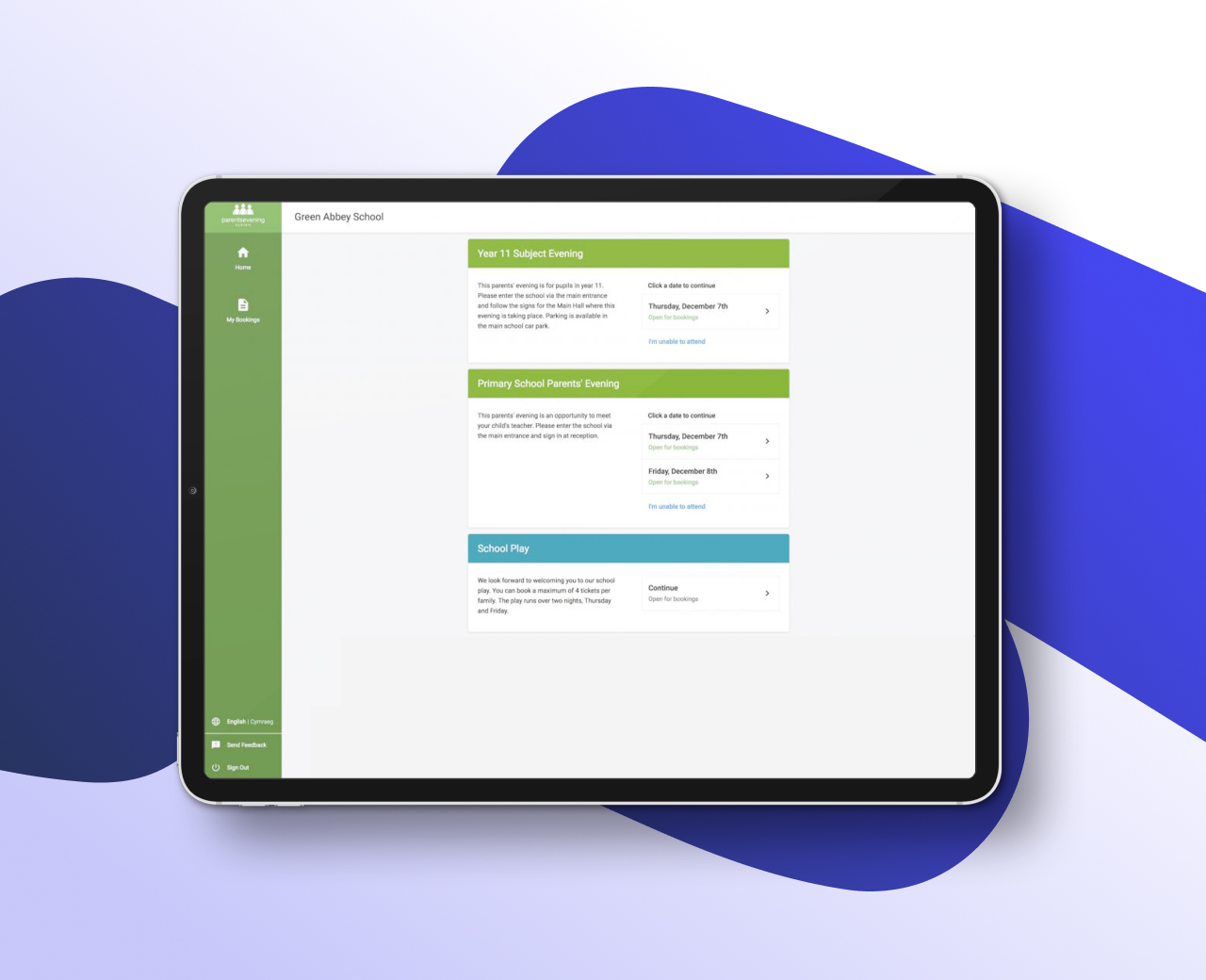 Online booking service for parents’ meetings.
