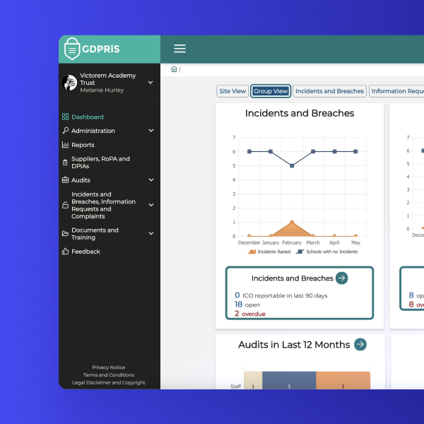 Scalable compliance that grows with your MAT. Seamlessly manage data protection across multiple sites and generate reports for a single school or multiple schools in just a few clicks.