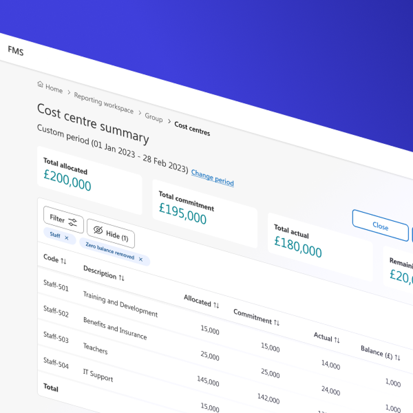 Boost visibility and control with a clear financial view for LA-maintained schools, independents, and academies – plus reporting at every level.