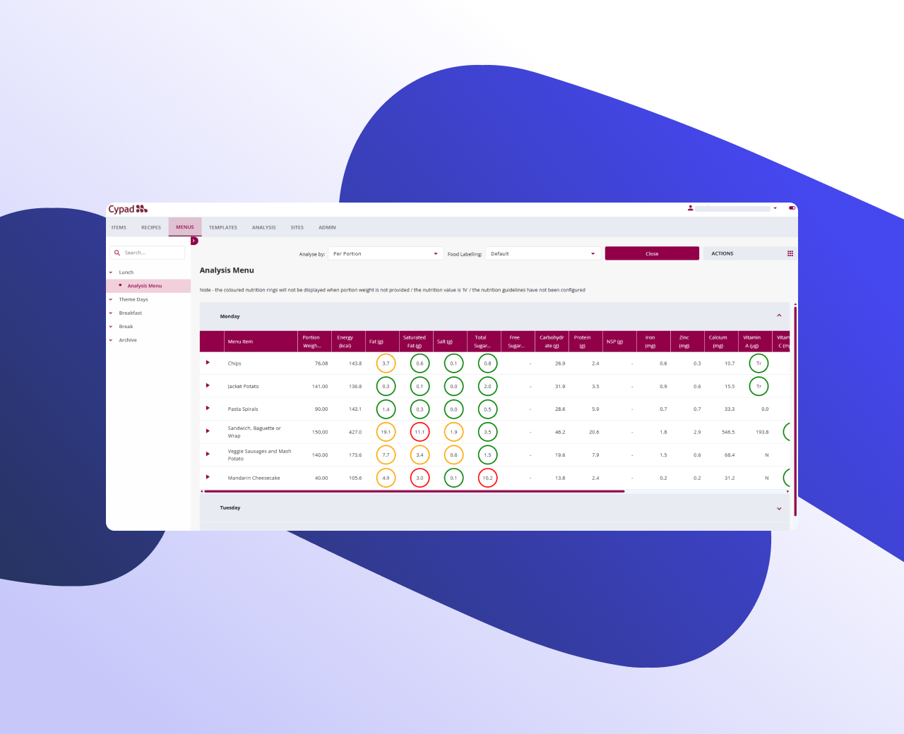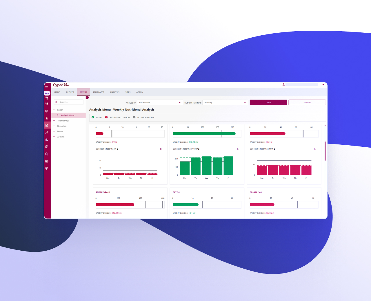 Assess entire menus for nutritional compliance, highlight areas for improvement, and ensure meals are balanced, varied, and appealing.