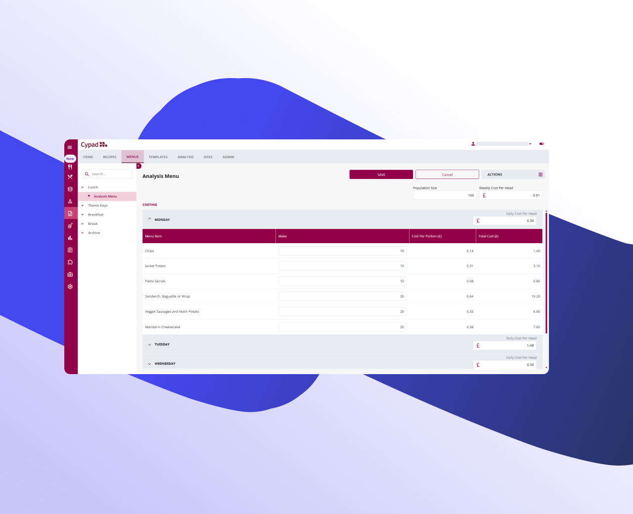 Calculate the true cost of each portion based on recipes and uptake, improving budgeting, menu pricing, and profitability.